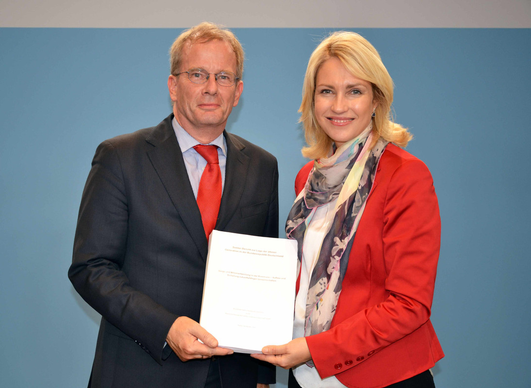 Am 6. Oktober 2015 übergab der Vorsitzende der Siebten Altenberichtskommission, Prof. Dr. Andreas Kruse, den Kommissionsbericht zum Thema "Sorge und Mitverantwortung in der Kommune – Aufbau und Sicherung zukunftsfähiger Gemeinschaften" an die Bundesseniorenministerin Manuela Schwesig.