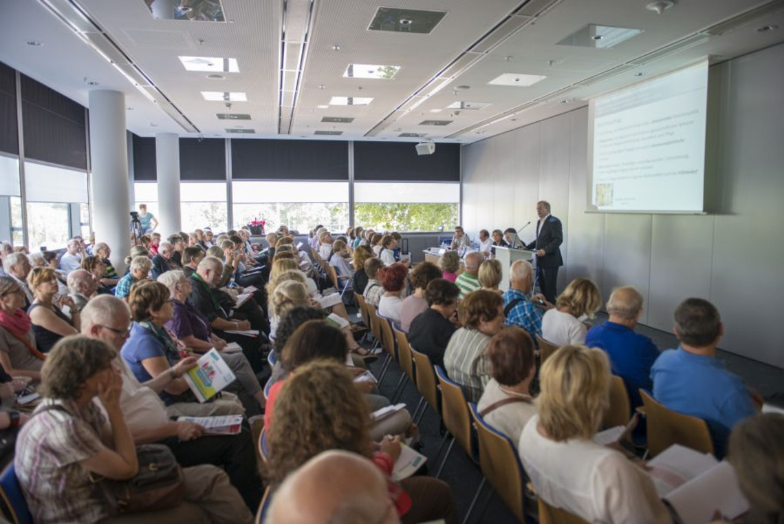 Am 8. Juli 2014 präsentierten Mitglieder der Siebten Altenberichtskommission auf einer gemeinsamen Fachtagung mit der Bundesarbeitsgemeinschaft der Senioren-Organisationen (BAGSO) Themen und Thesen aus der Arbeit am Siebten Altenbericht. Vertreter und Vertreterinnen einzelner BAGSO-Mitgliedsorganisationen kommentierten die Beiträge der Kommissionsmitglieder. Darüber hinaus konnte das Publikum die Beiträge kommentieren oder ergänzen. Auf diese Weise kam es zu einem fruchtbaren Austausch zwischen der Altenberichtskommission und den Verbänden und Organisationen im BAGSO-Netzwerk. Viele der Anregungen und Anmerkungen aus den Kommentaren und Diskussionen werden nun in die weitere Arbeit am Siebten Altenbericht einfließen.